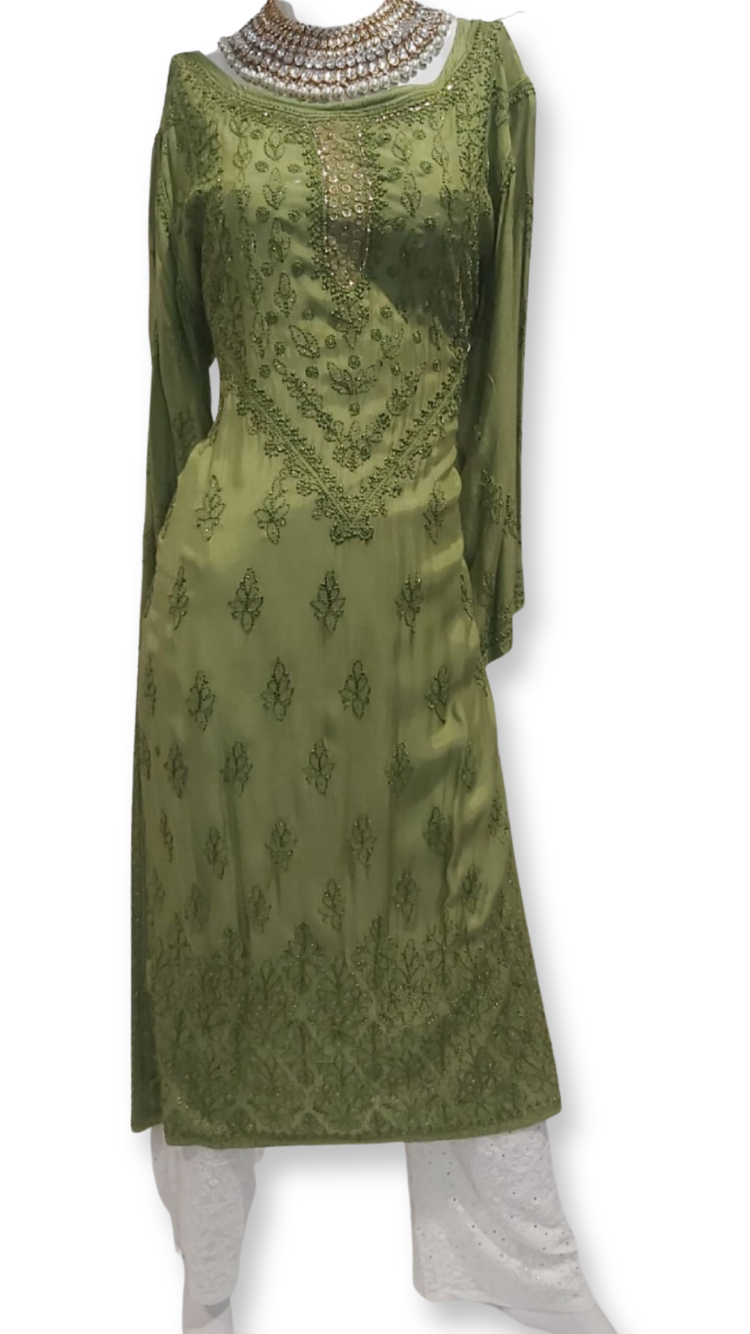 Premium cotton silk Chikankari & Mukaish kurta.Available in different colours and sizes.
