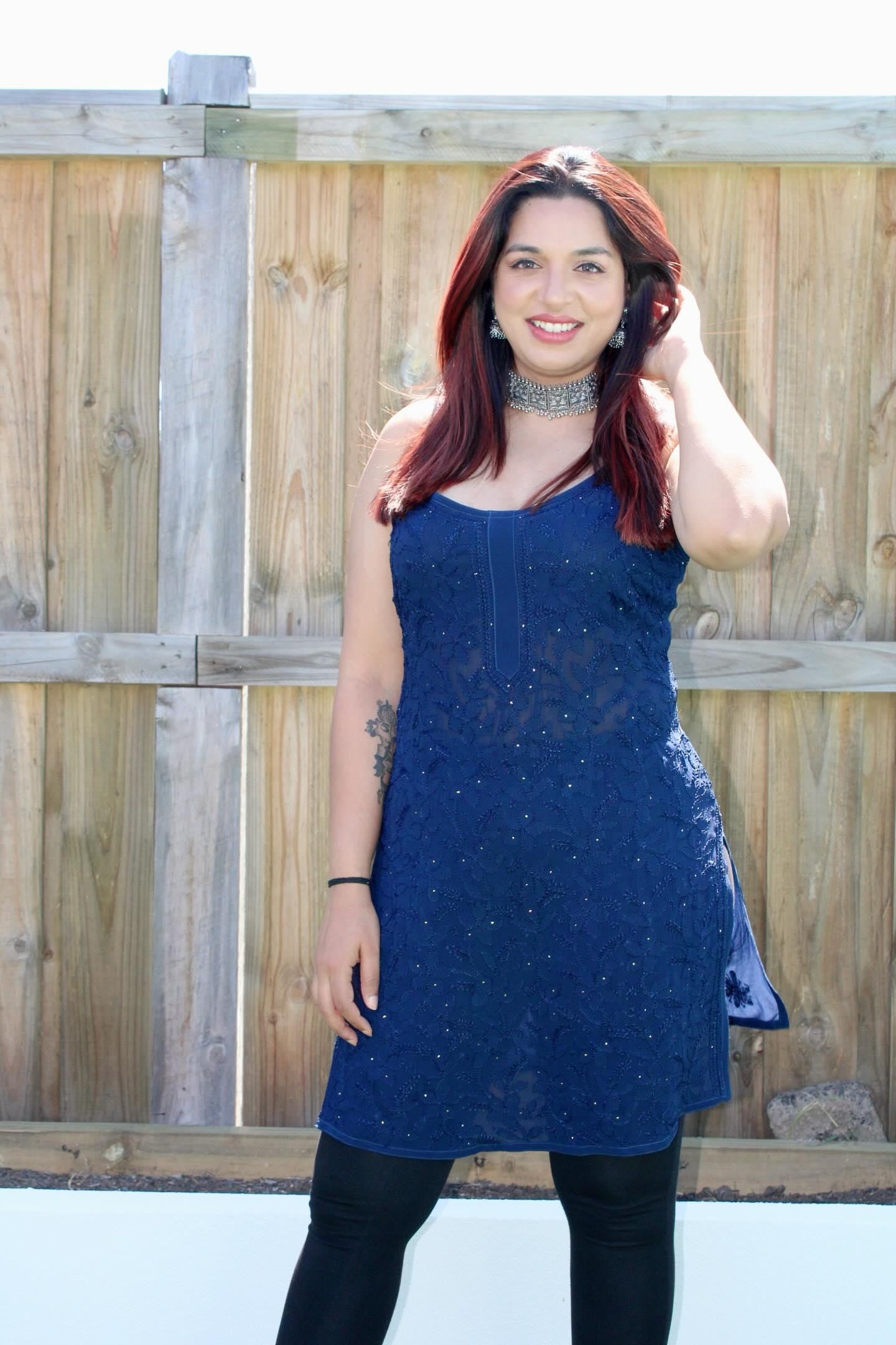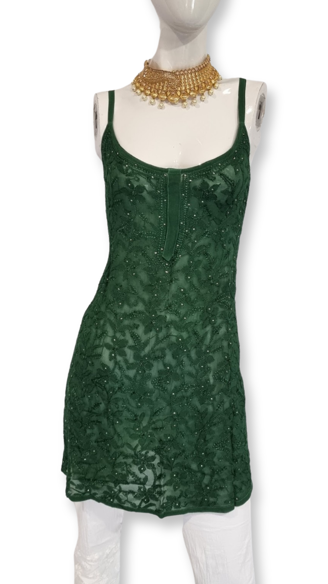 Pure gorgette chikankari short kurta/top, which is a masterpiece in itself and will speak loud when you wear it.