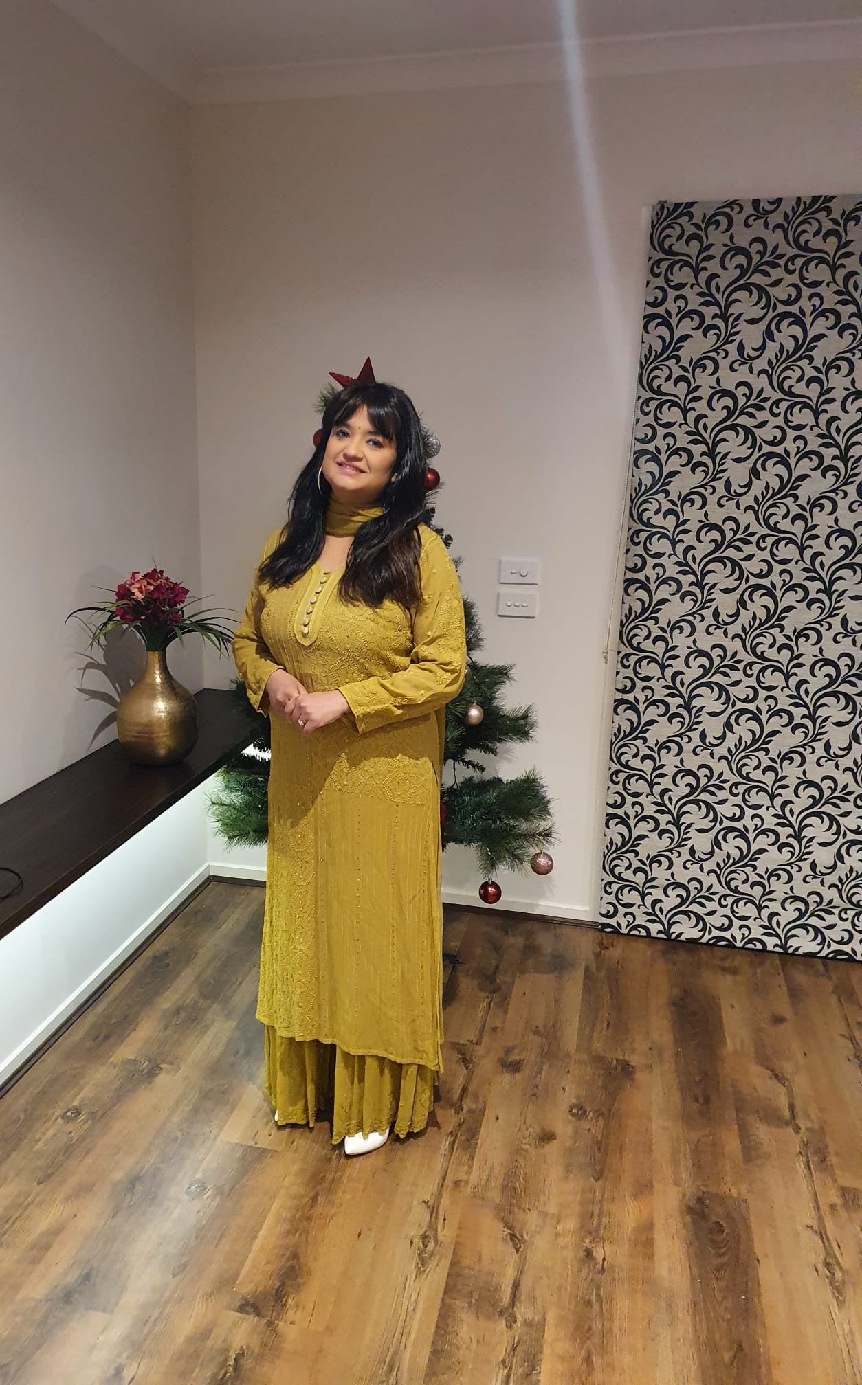 Pure gorgette Designer Chikan and Mukaish sharara suit available in different sizes.
