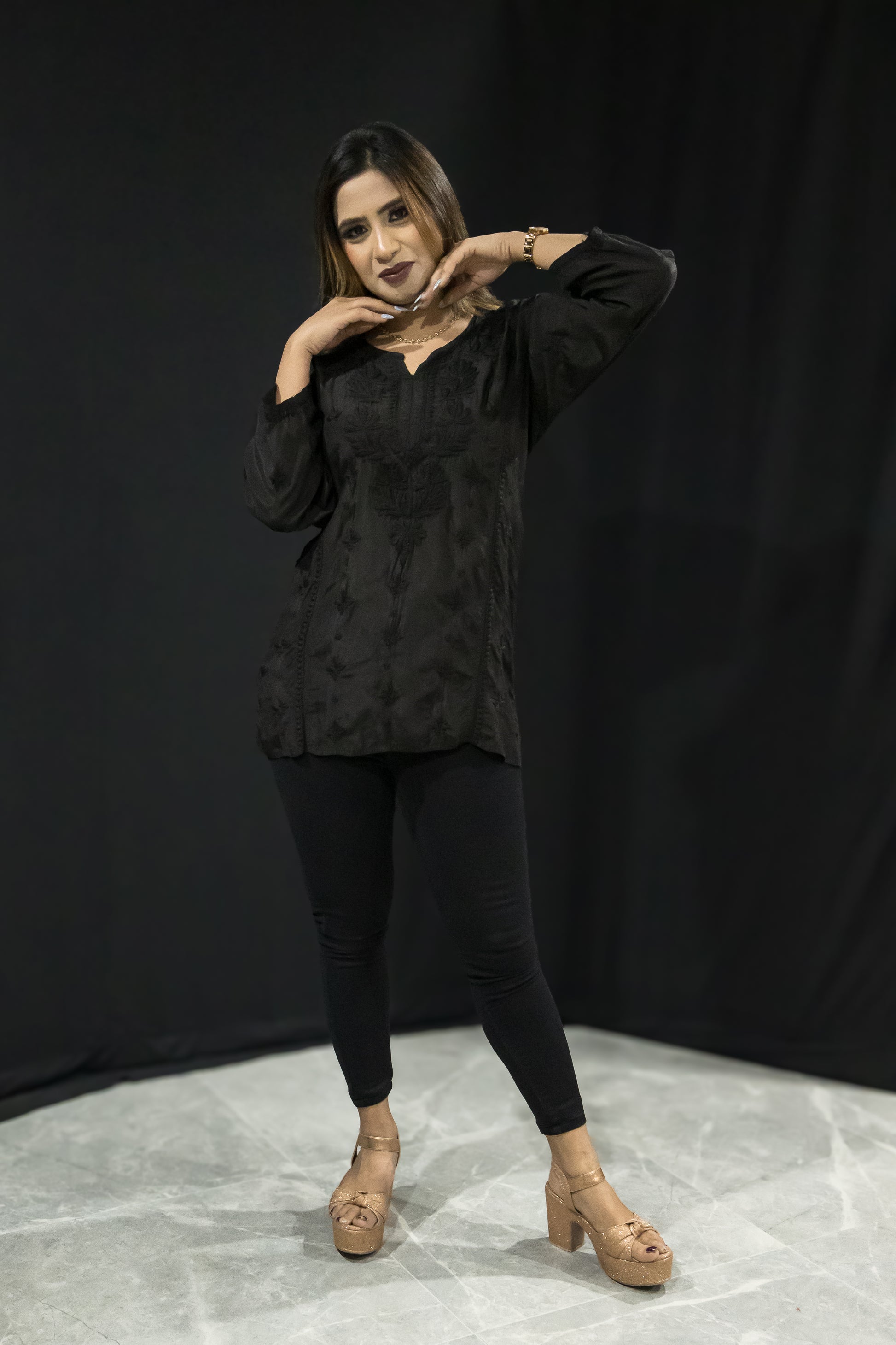 Silk chikankari short top